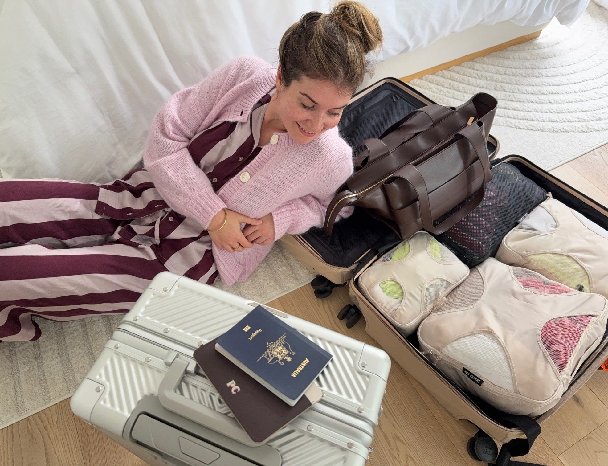 Light coloured packing cubes - Black cubes look sleek but it’s hard to tell what’s inside, so my advice is to opt for light colours or a colour system so that you can tell them apart when you get to your destination